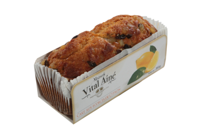 Farine de blé ; raisins macérés (raisins secs 12% réhydratés, rhum) ; écorces de citron confites 14,9% (écorces de citron, sirop de glucose fructose, sucre, correcteur d'acidité [acide citrique], conservateur [E220]) ; œufs frais 13,2% ; sucre ; huile de tournesol ; beurre ; sirop de sucre inverti cristallisé ; stabilisant (glycérol) ; pâte d'écorces de citron 1,6% (écorces de citron, sirop de glucose, saccharose, correcteur d'acidité [acide citrique] ; rhum ; stabilisant (sorbitols) ; poudres à lever (diphosphates et carbonates de sodium, agent de charge [carbonates de calcium]) ; sirop de glucose-fructose ; sel ; émulsifiant (lécithine de soja) ; arôme naturel de citron avec d'autres arômes naturels ; conservateur (sorbate de potassium) ; extrait de malt d'orge ; épaississant (gomme xanthane) ; gluten de blé ; farine de blé malté ; agent de traitement de la farine (acide ascorbique).